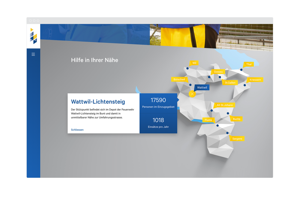 Auch im digitalen Bereich kann der illustrative Erlebniskarten-Style von grossem Nutzen sein. Auf der interaktiven Regionenkarte wird möglichen Hilfesuchenden schnell Sicherheit und Orientierung geboten.