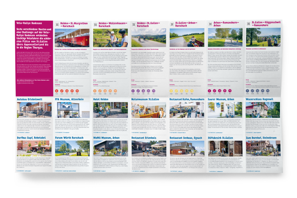 Auf den vorgegebenen Velorouten werden charmante Restaurants, spannende Museen und viele Erlebnisbetriebe besucht und an allen POI's kräftig Sticker gesammelt. Die Sticker können die Teilnehmer:innen auf der von Thurgau Tourismus erworbenen Veloglocke aufkleben und nehmen nebenbei auch noch an der Verlosung eines Wellness-Weekends teil.